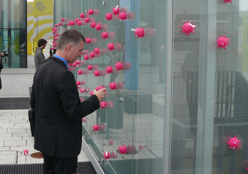 Der USP des Produktes: Bakterien haben keine Chance. Die Idee: Bakterien müssen draußen bleiben! Die Guerilla Aktion war so erfolgreich, dass sie weitergeführt und für Messestände, Online Marketing Maßnahmen und Anzeigen adaptiert wurde.