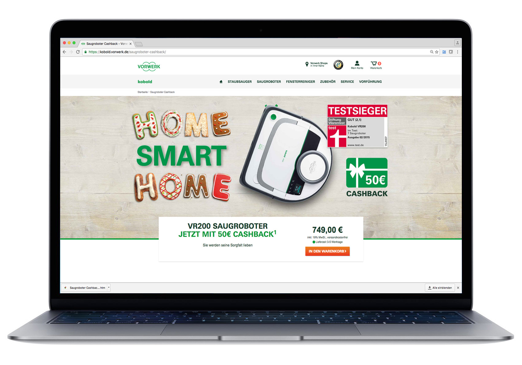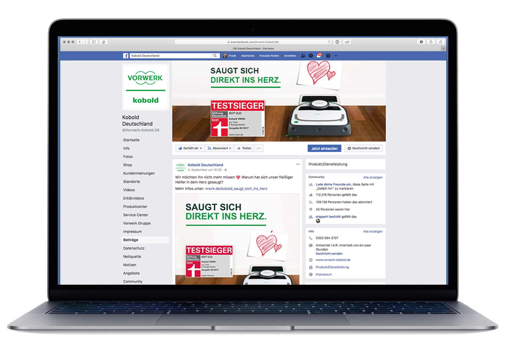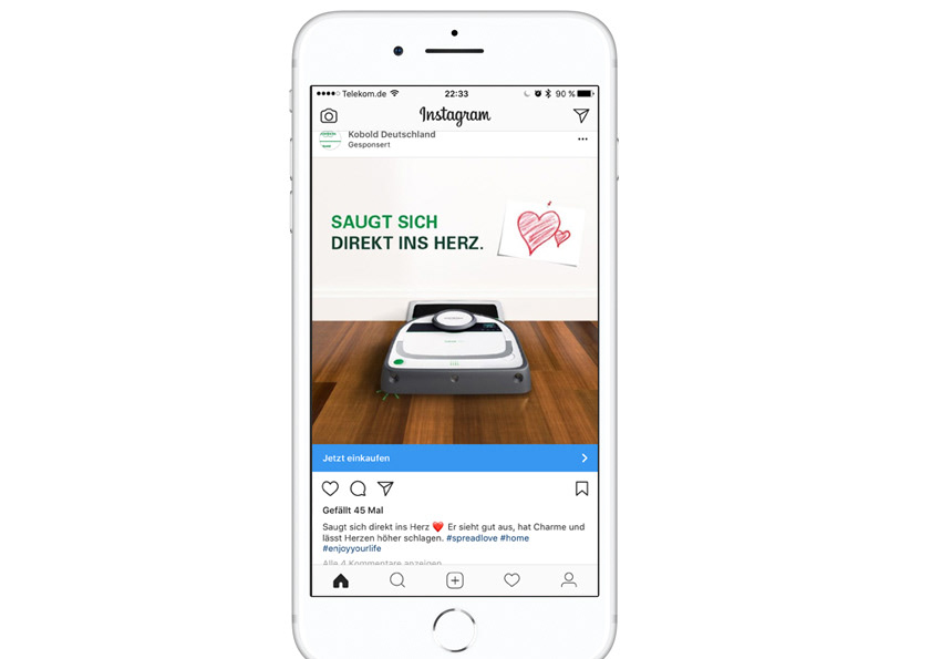 Vorwerk steht für wegweisende Staubsauger-Technologie und setzt auch im E-Commerce ein klares kreatives Signal. Meine Kernaufgabe war die Konzeption digitaler Kampagnen für den Saugroboter Kobold VR 200, die hauptsächlich über Social Media Kanäle wie Facebook, Instagram und Youtube mit Anzeigen und Videos ausgespielt wurden. Ein großes Paket entsprechender Displaybanner erweiterte die Kampagne.