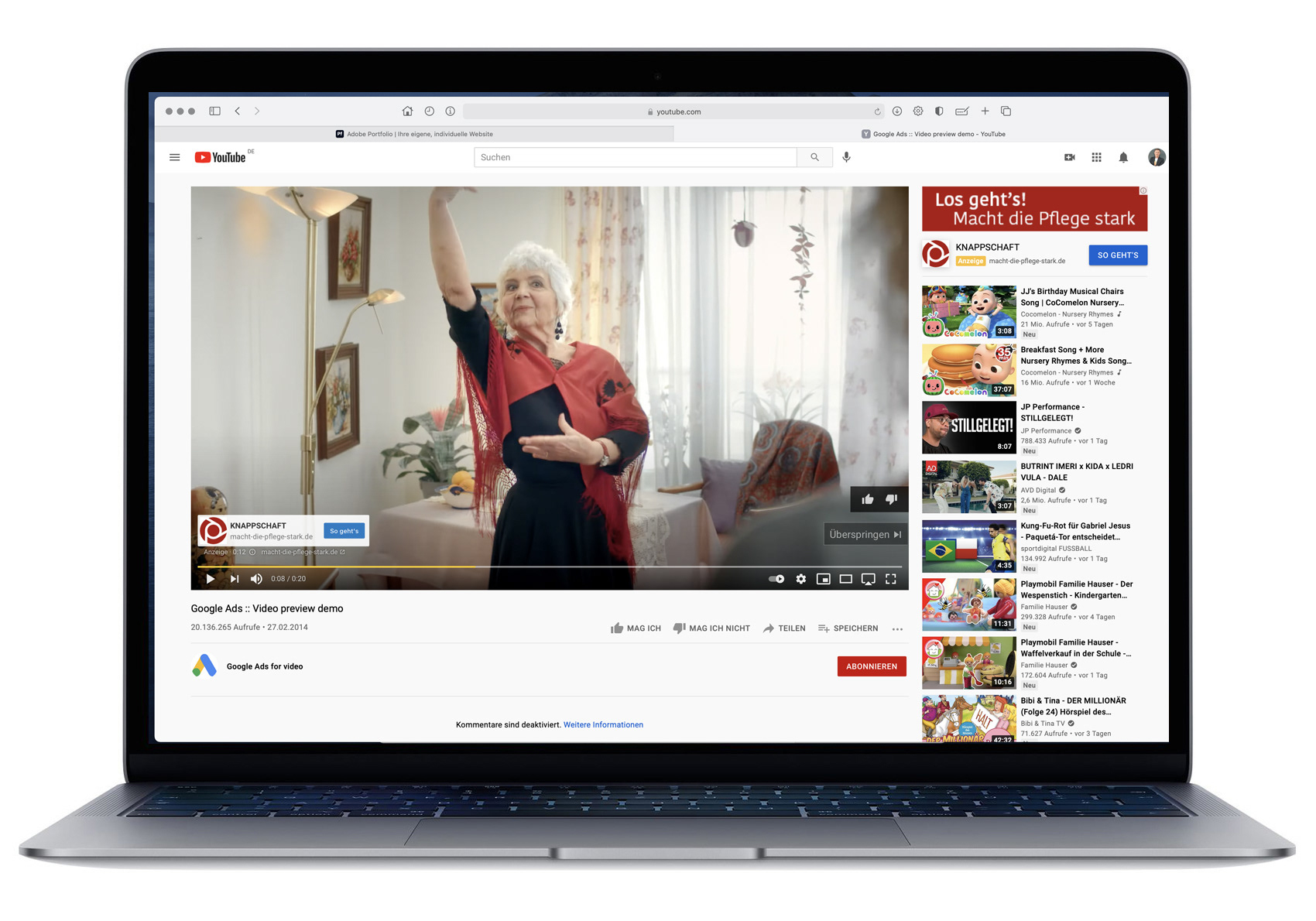 mit Video Ads und Storys und als Video Ad auf Youtube.