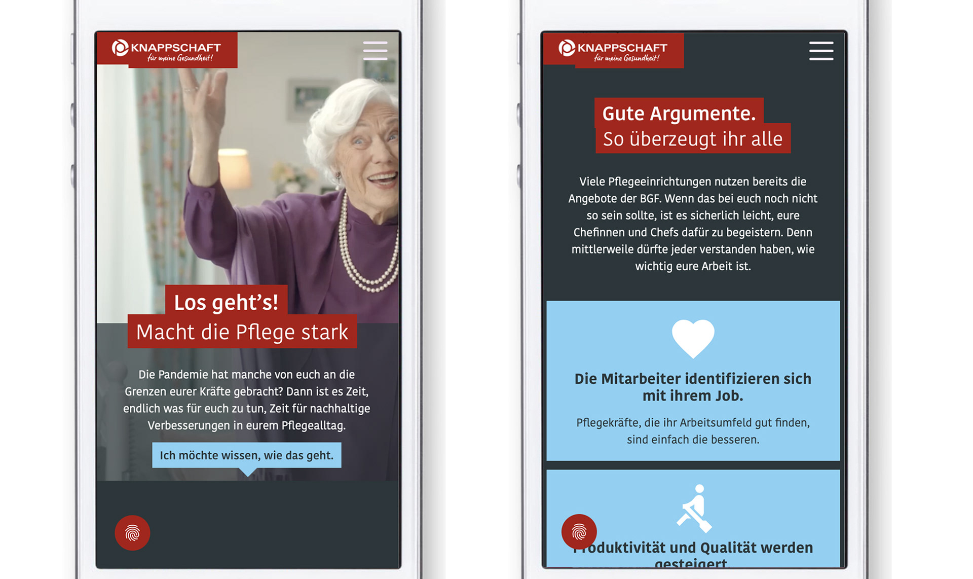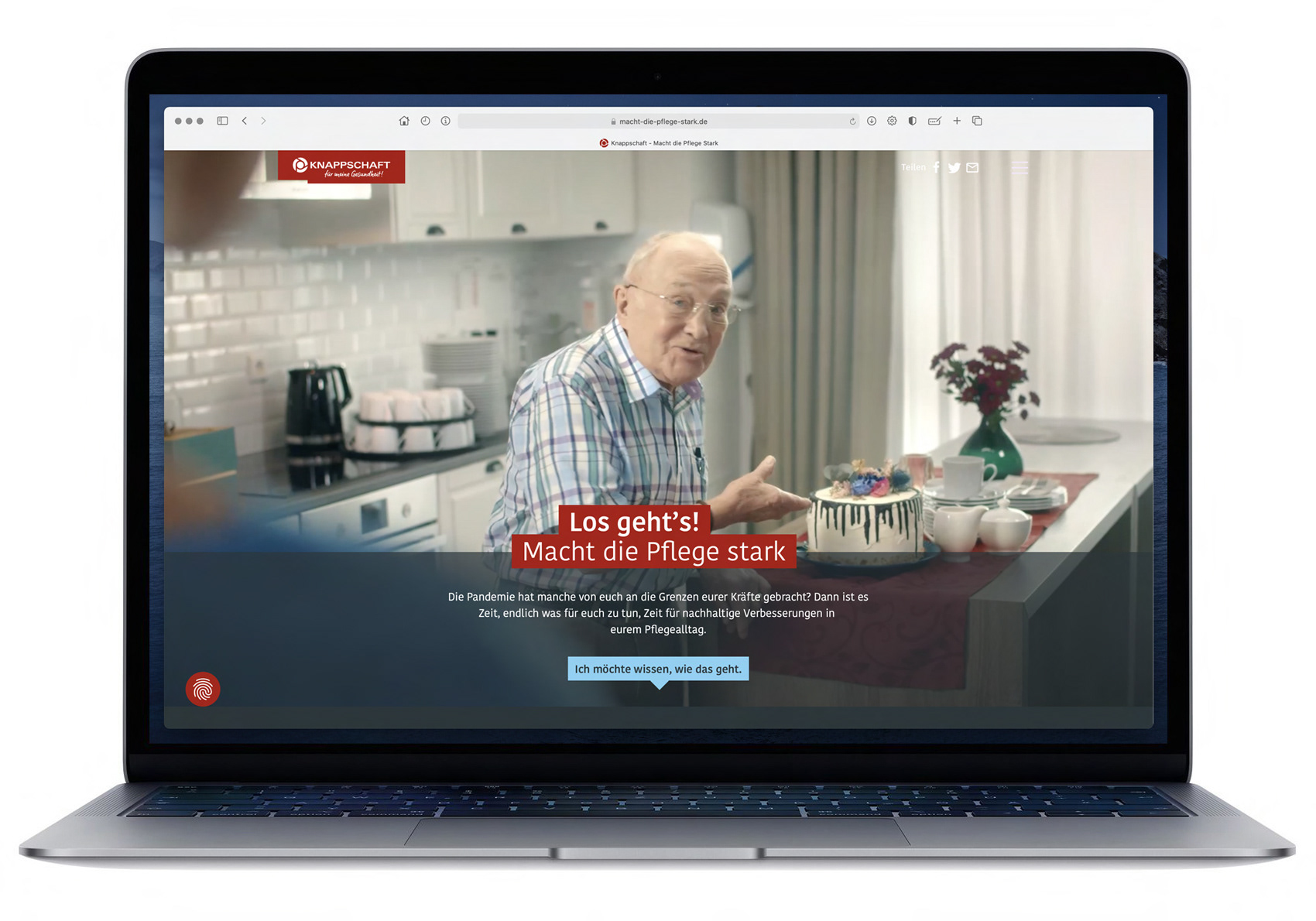 Der Kampagnen-Aufruf „Los geht’s! Macht-die-Pflege-stark.de“ aktiviert und leitet die Zielgruppe auf die Kampagnen Landing Page weiter. Hier bekommen die Pflegekräfte relevante Informationen zu dem Thema und weitere Möglichkeiten aufgezeigt.